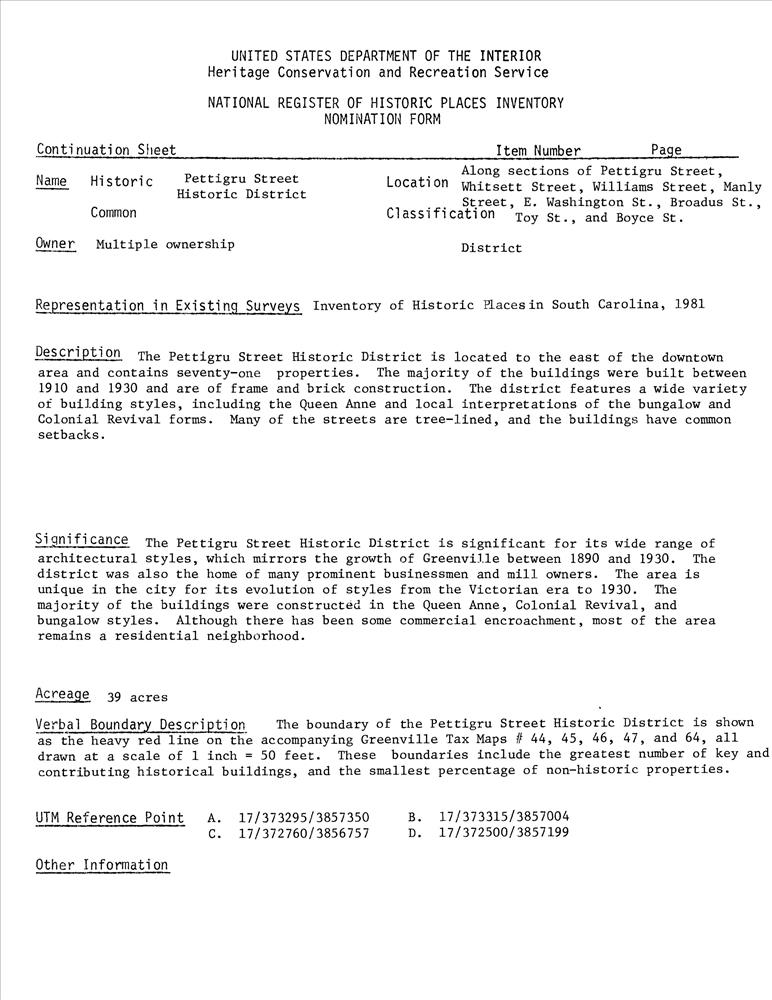 Greenville ; Pettigru, Whitsett, Williams, Manly, E. Washington, Broadus, Toy, and Boyce Sts.