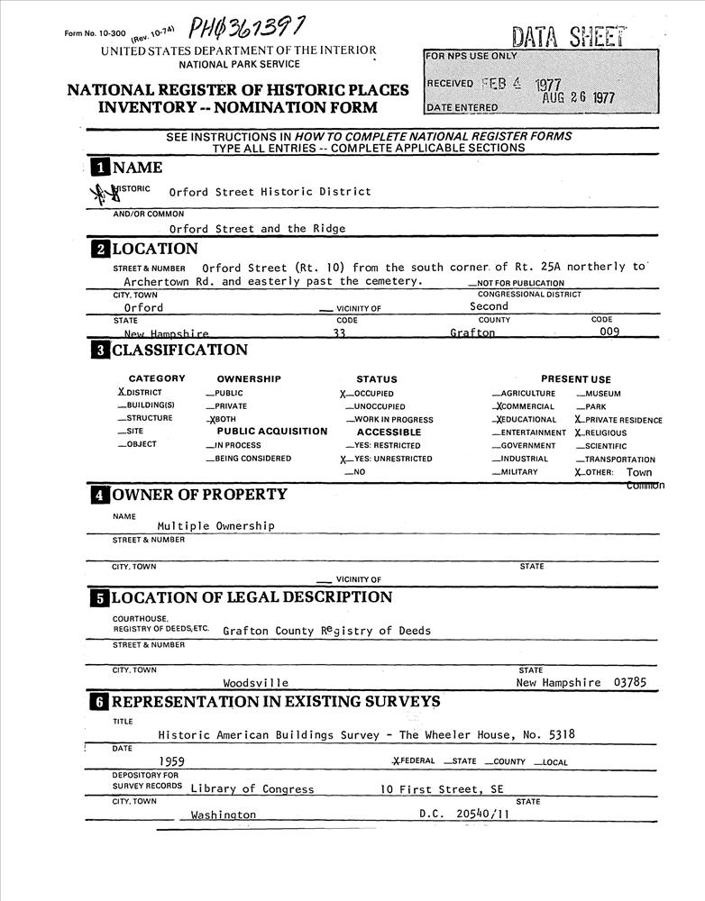 Orford ; Orford St. (NH 10) from Rt. 25A to Archertown Rd., E to include cemetery