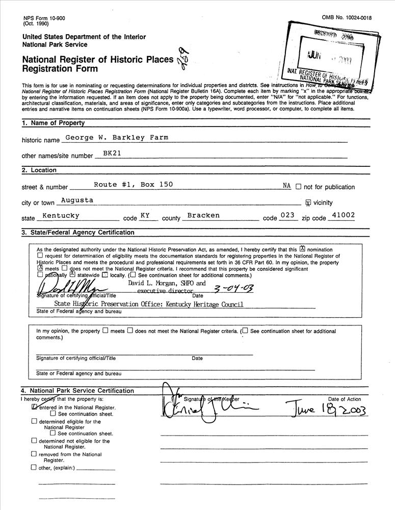 Barkley, George W., Farm