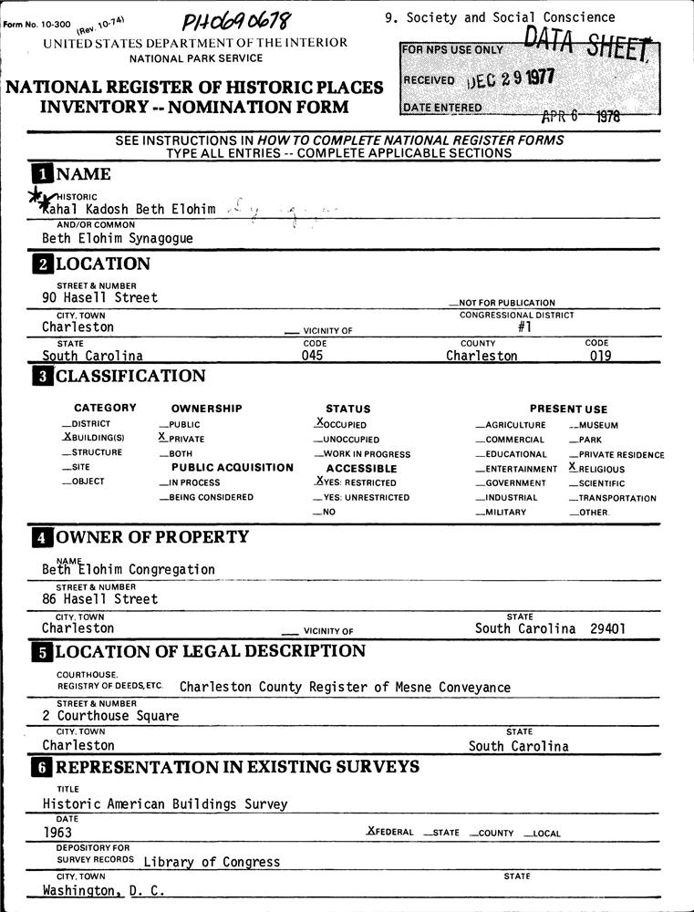 Kahal Kadosh Beth Elohim Synagogue