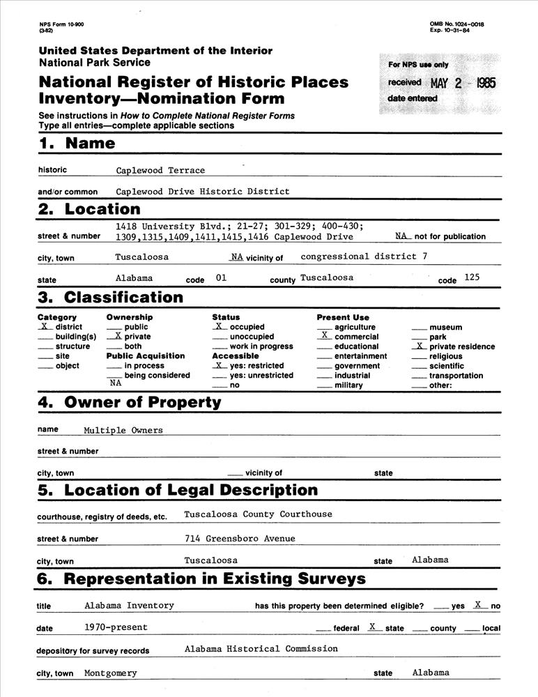 Tuscaloosa ; Roughly bounded by Caplewood Dr., and University Blvd.