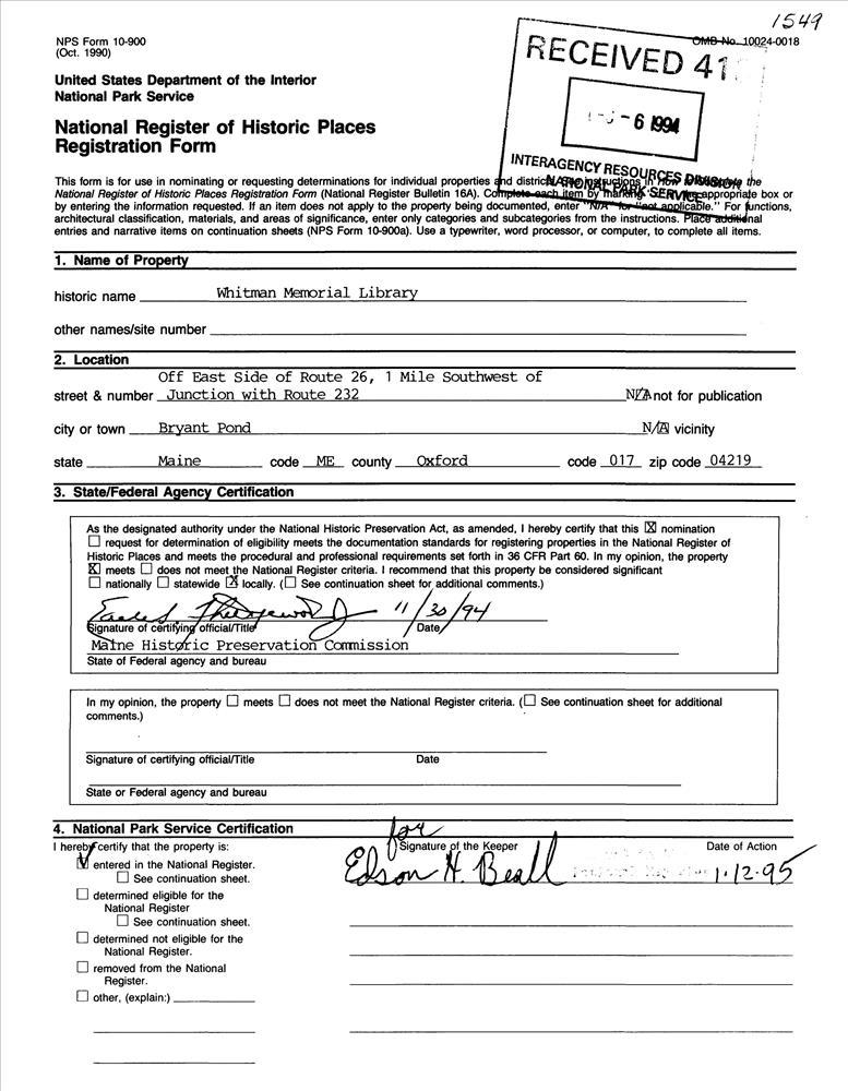 Whitman Memorial Library