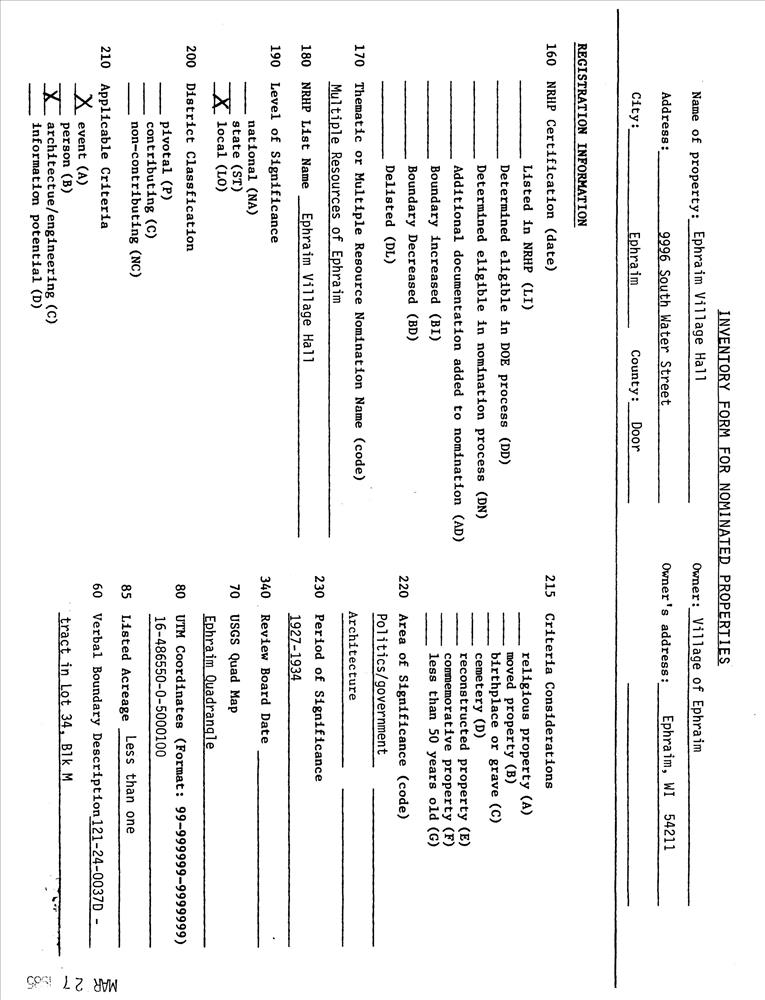 Ephraim ; 9996 S. Water St.