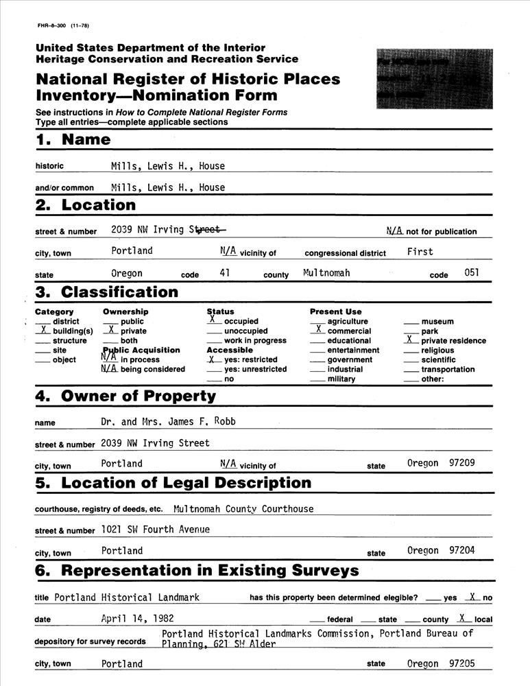 Portland ; 2039 NW Irving St.
