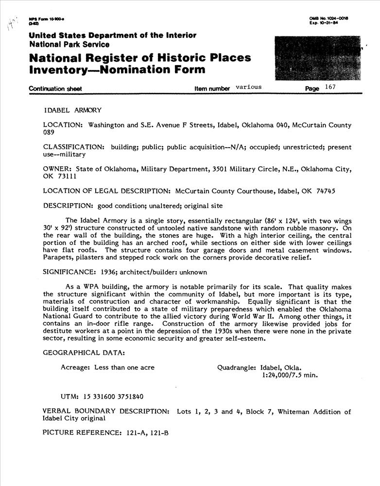 WPA Public Bldgs., Recreational Facilities and Cemetery Improvements in Southeastern Oklahoma, 1935--1943 TR