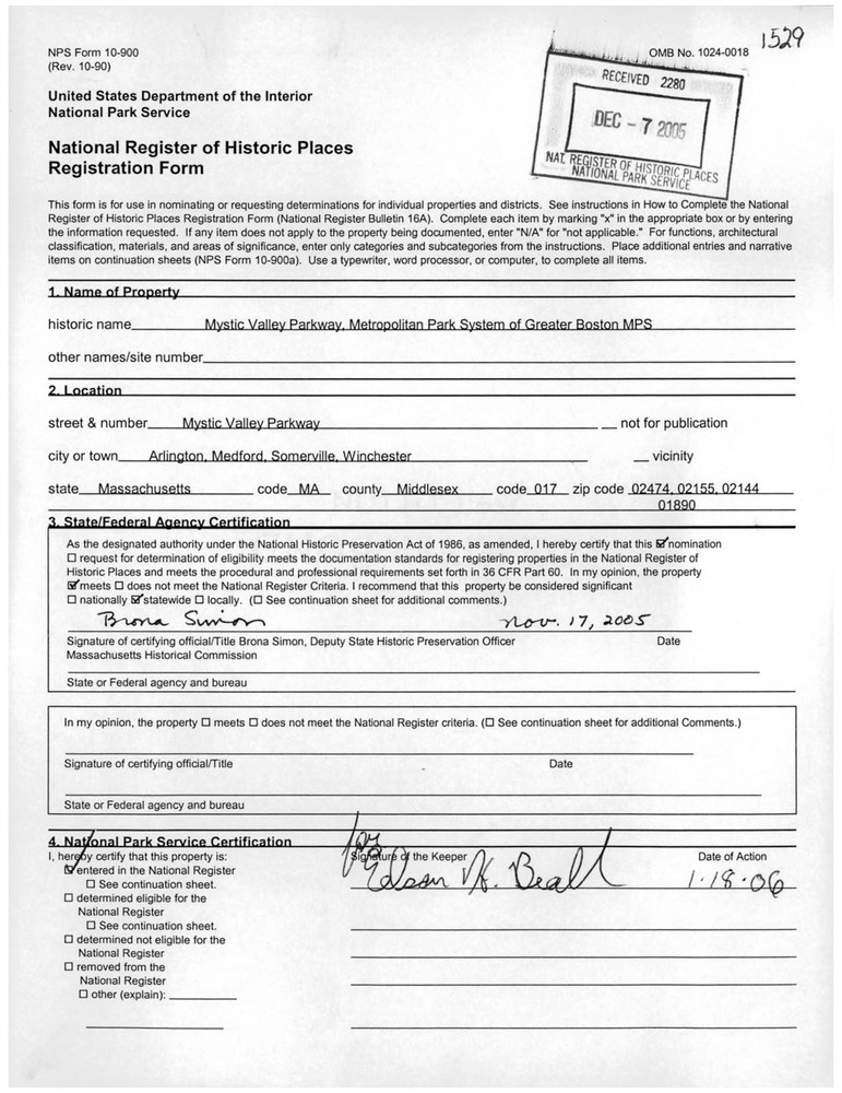 Mystic Valley Parkway, Metropolitan Park System of Greater Boston MPS