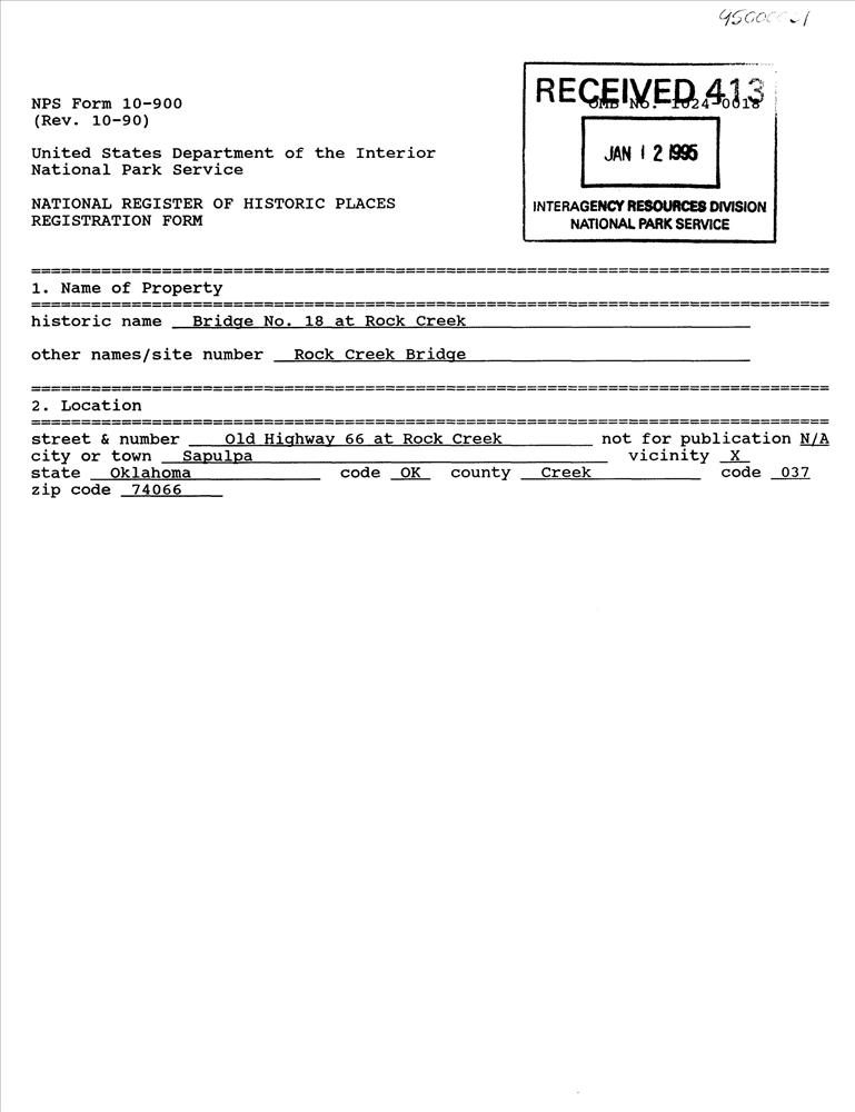 Sapulpa ; Jct. of US 66 and Rock Cr.