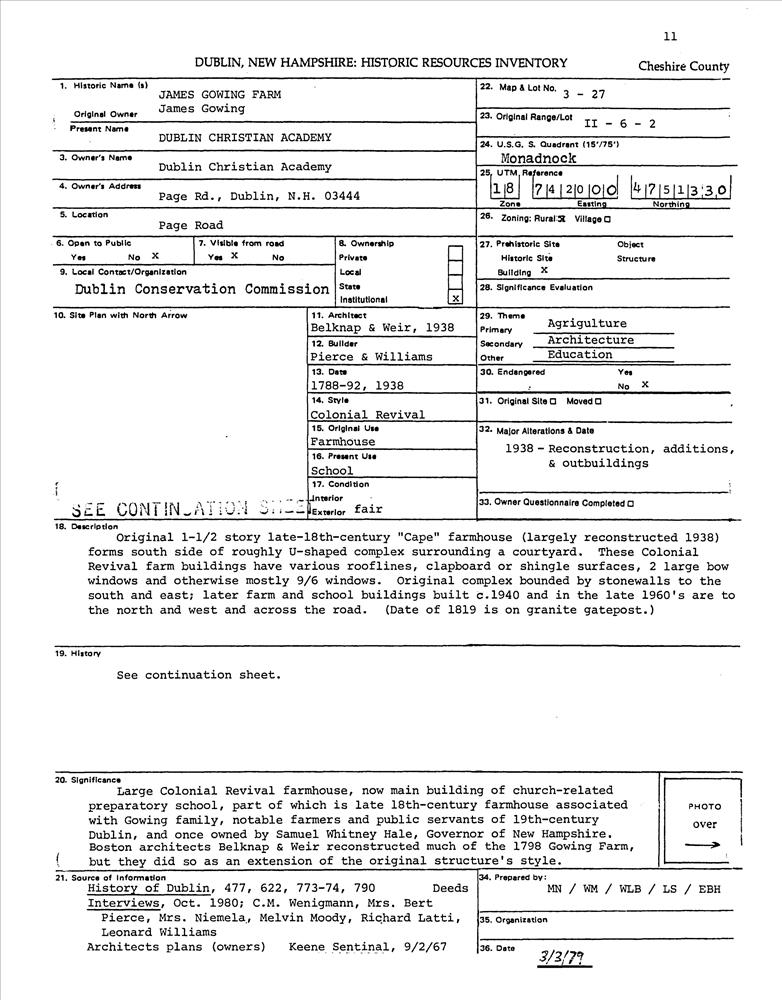 Gowing, James, Farm