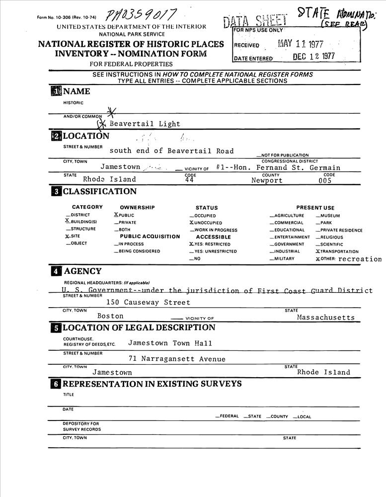 Jamestown ; Beavertail Rd.