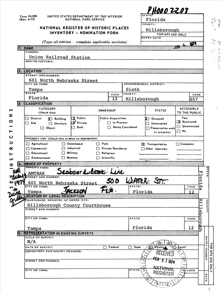 Tampa ; 601 N. Nebraska St.