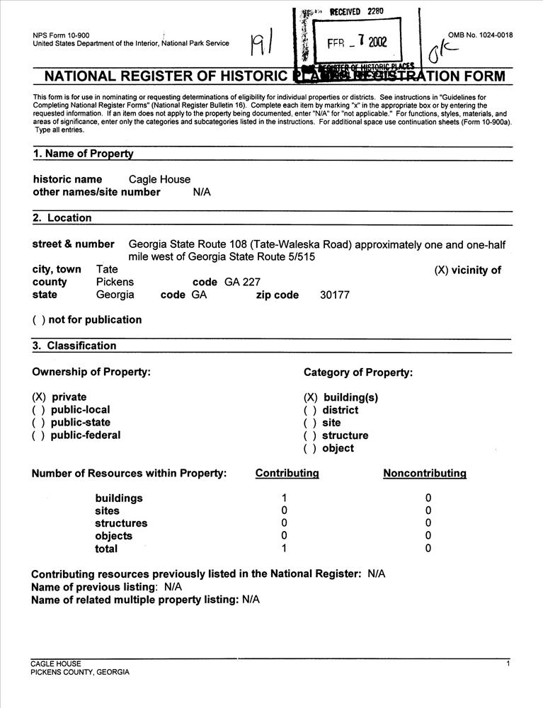 Tate ; GA 108, approx. 1 1/2 mi. W of GA 5/515