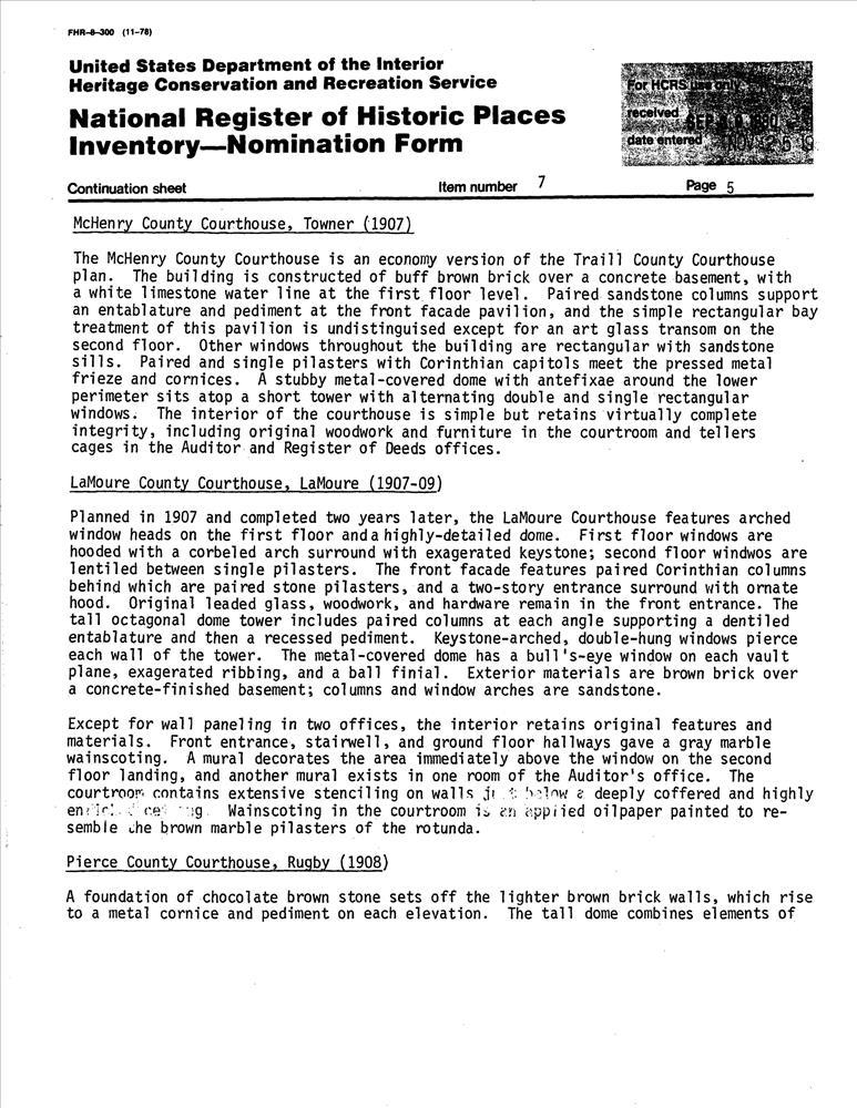 Buechner and Orth Courthouses in North Dakota TR