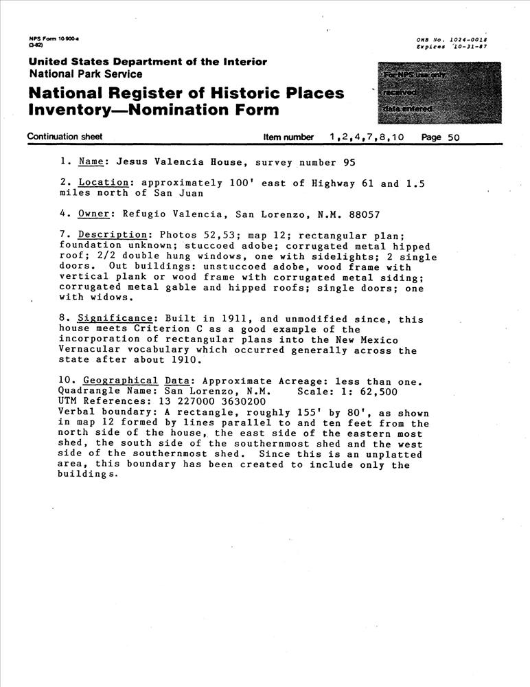San Juan ; E of NM 61