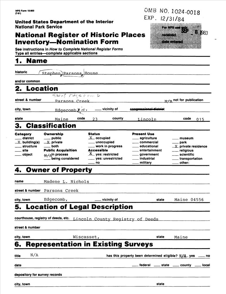 Parsons, Stephen, House
