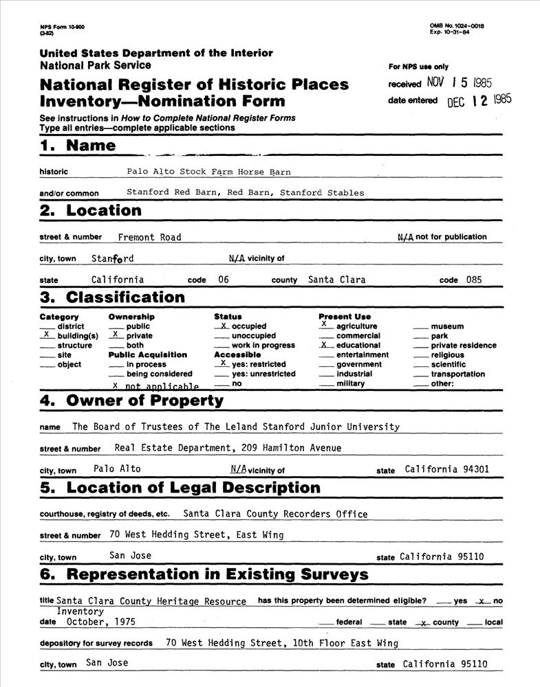 Palo Alto Stock Farm Horse Barn