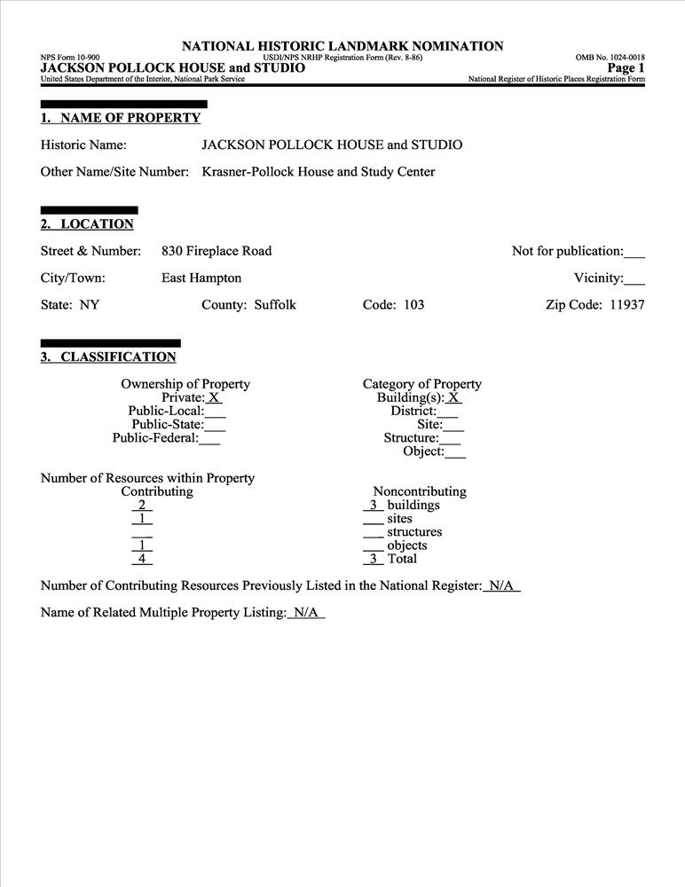 Pollock, Jackson, House and Studio