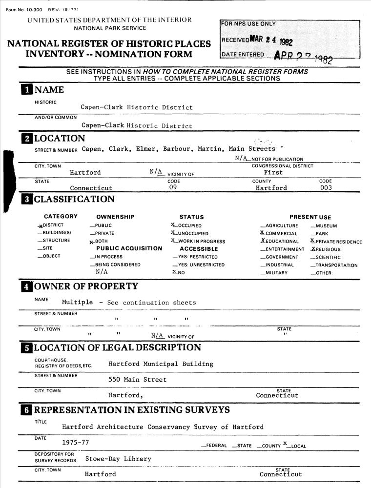 Hartford ; Capen, Clark, Elmer, Barbour, Martin, and Main Sts.