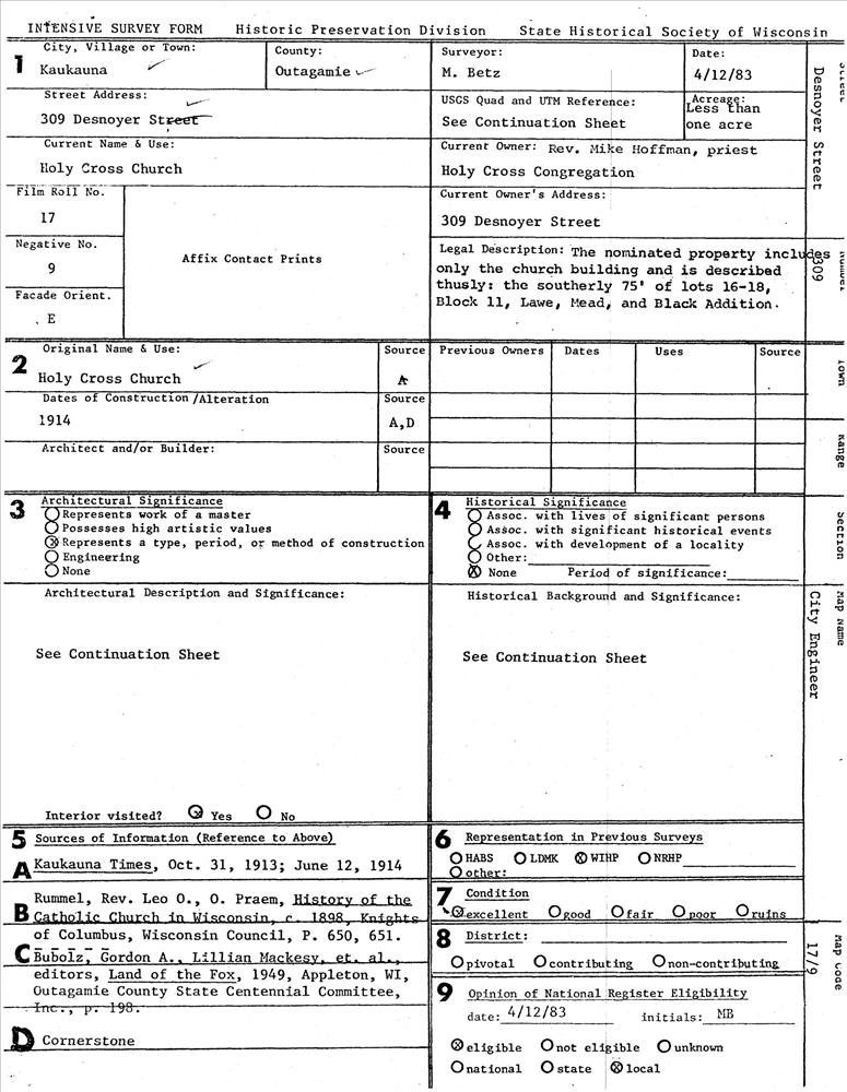 Kaukauna ; 309 Desnoyer St.