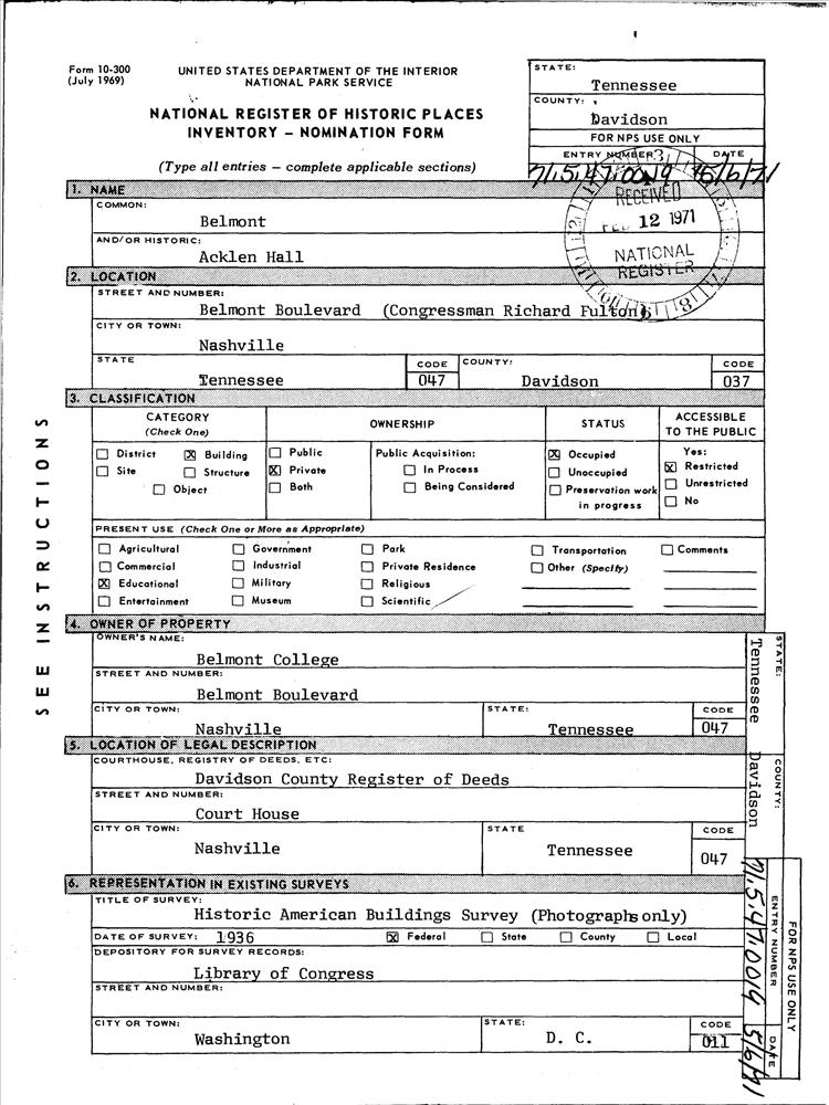 Nashville ; Belmont Blvd.