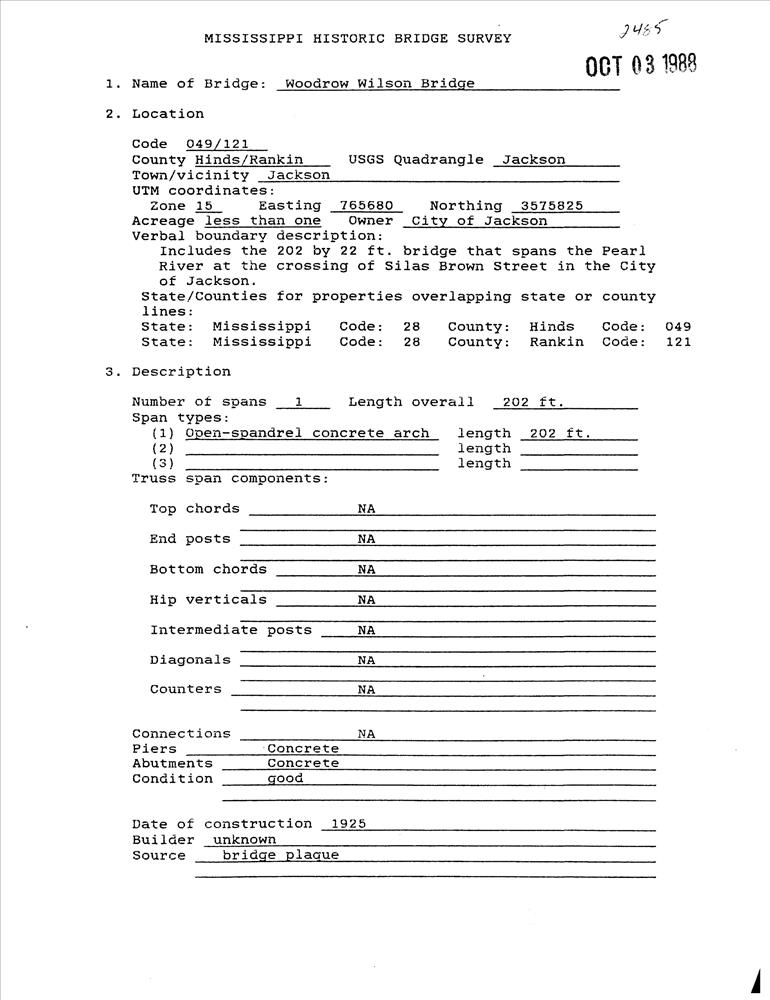 Jackson ; Spans Pearl River on Silas Brown St.