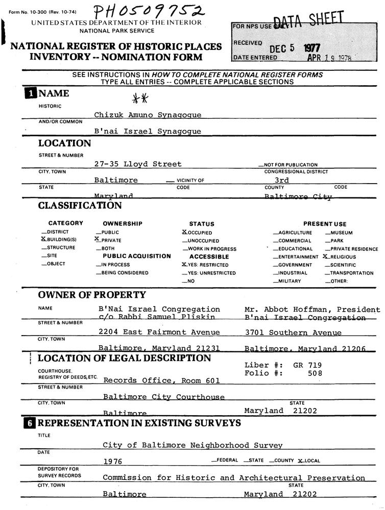 Baltimore (Independent City) ; 27--35 Lloyd St.
