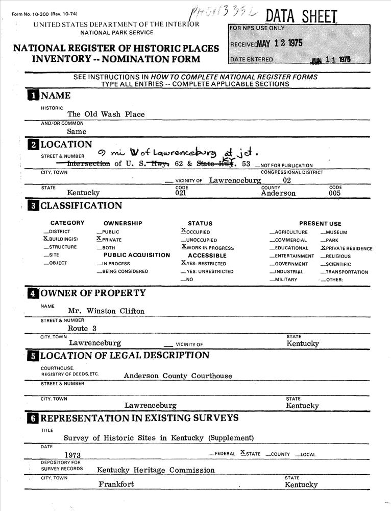 Lawrenceburg ; 9 mi. W of Lawrenceburg at jct. of U.S. 62 and KY 53