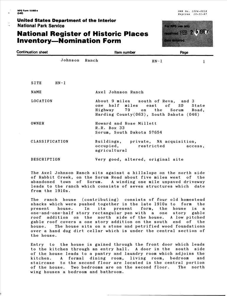 Johnson, Axel, Ranch