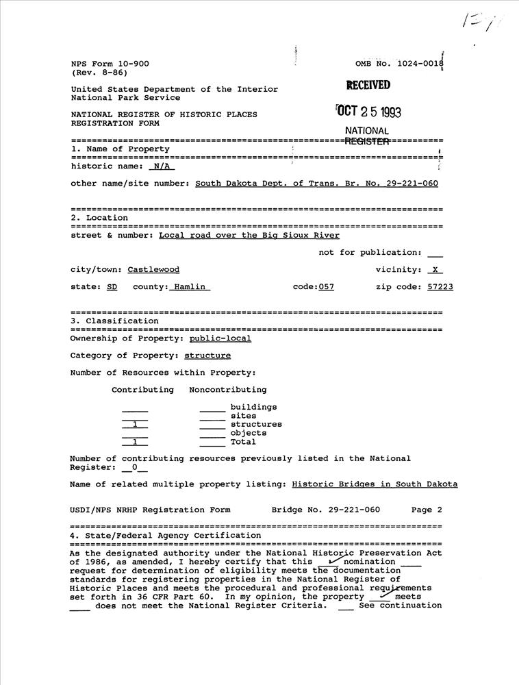 South Dakota Dept. of Transportation Bridge No. 29-221-060