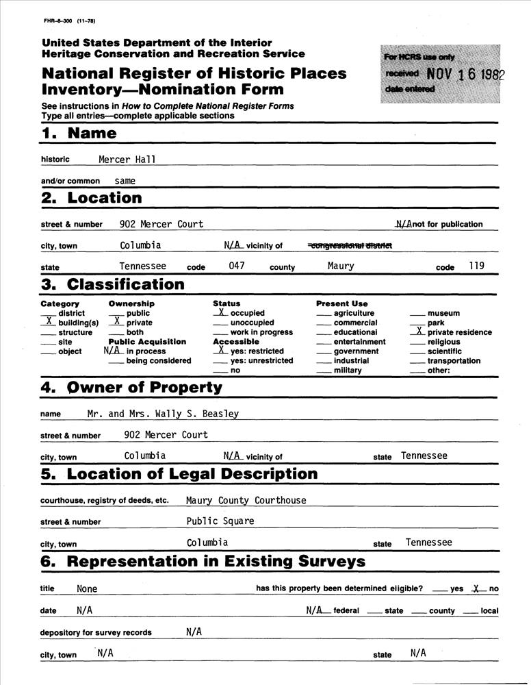Columbia ; 902 Mercer Ct.