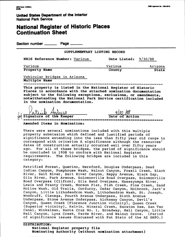 Vehicular Bridges in Arizona MPS