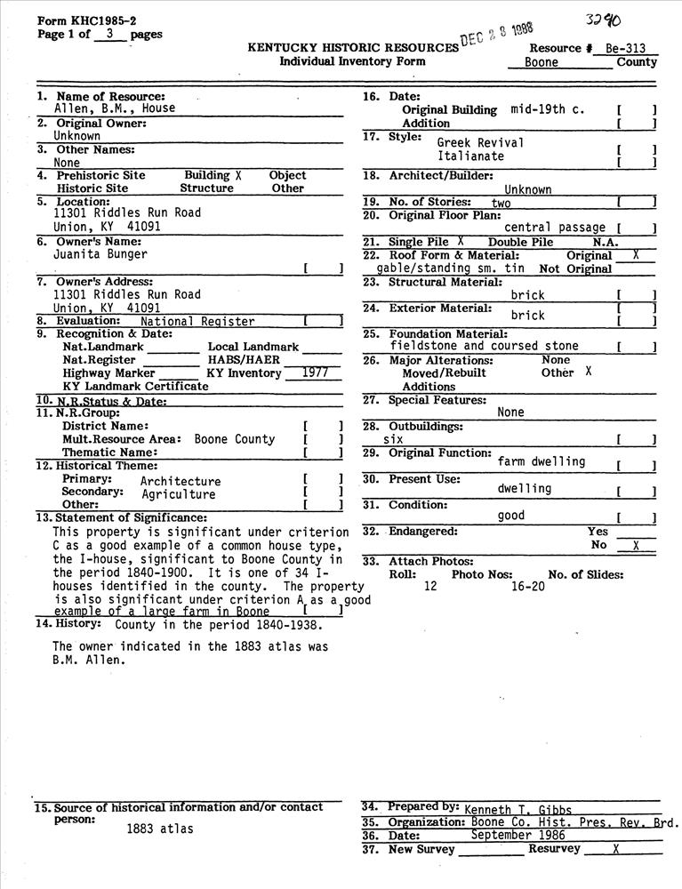 Allen, B. M., House