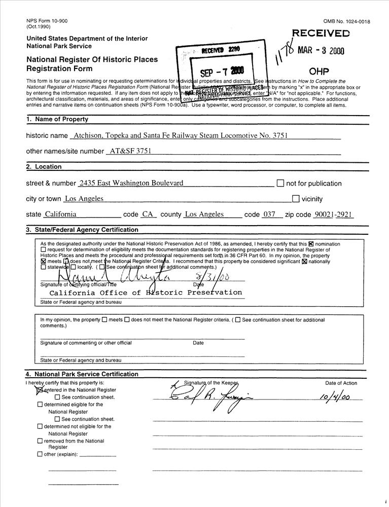 Atchison, Topeka, and Santa Fe Railway Steam Locomotive No. 3751