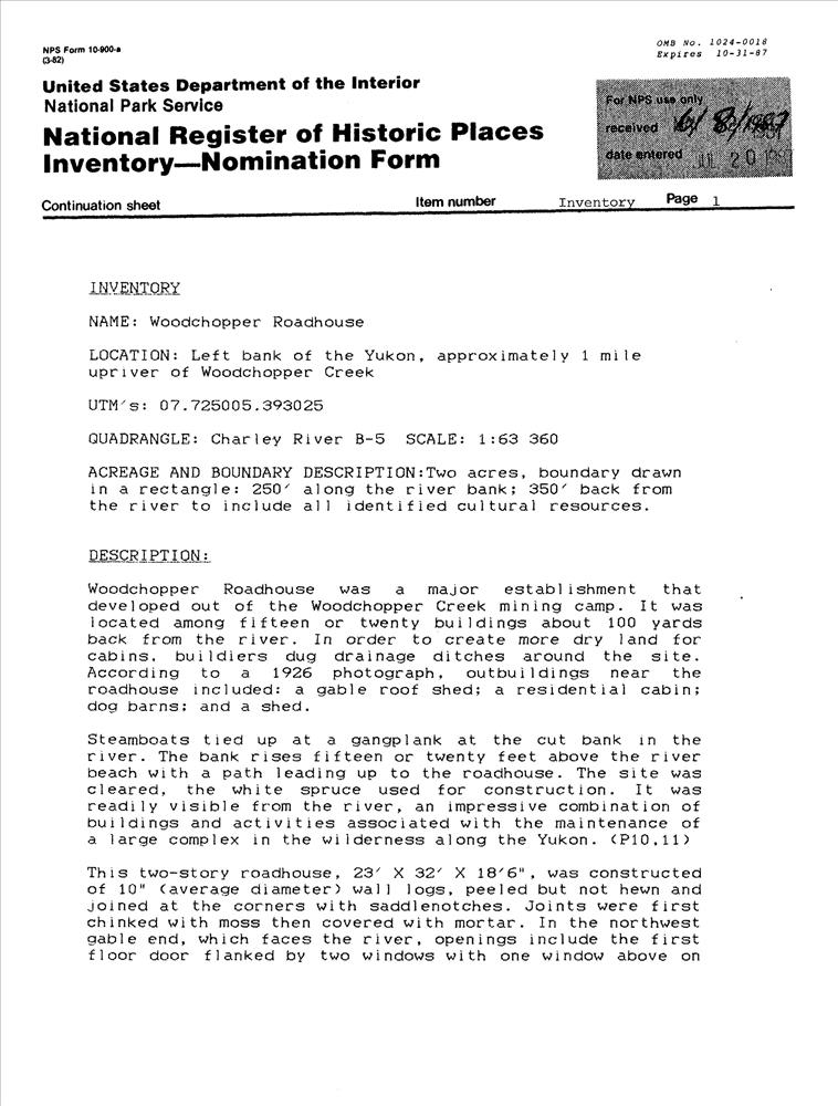 Eagle ; Left bank of the Yukon River 1 mi. up from Woodchopper Creek