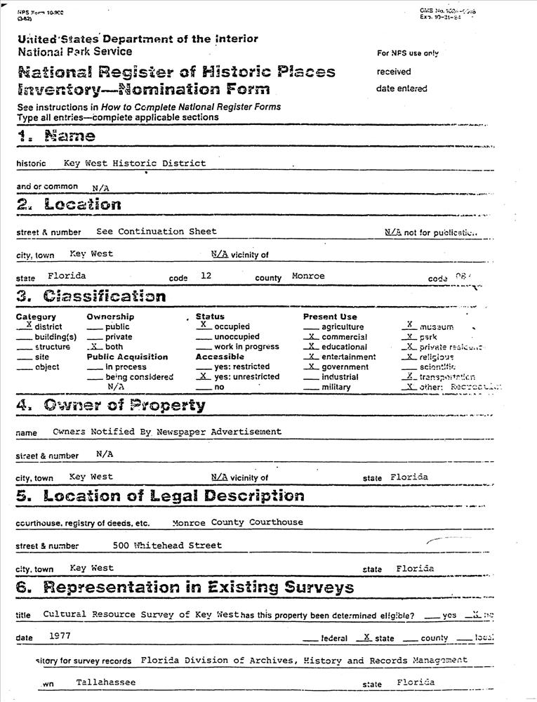 Key West ; Roughly bounded by Emma, Whitehead, White, and South Sts., Mallory Square, and the Atlantic Ocean