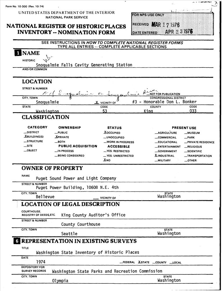 Snoqualmie Falls Cavity Generating Station