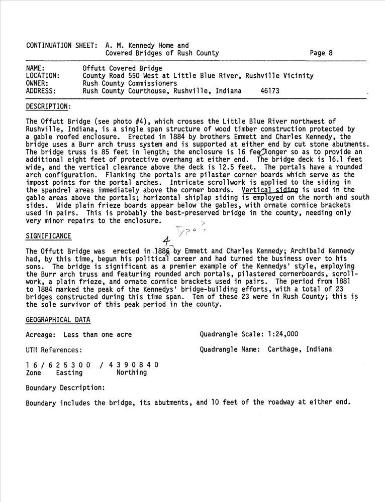Kennedy, A. M., House and Covered Bridges of Rush County TR