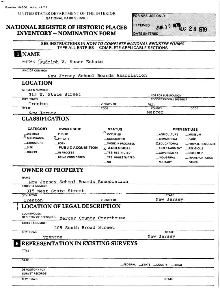 Kuser, Rudolph V., Estate