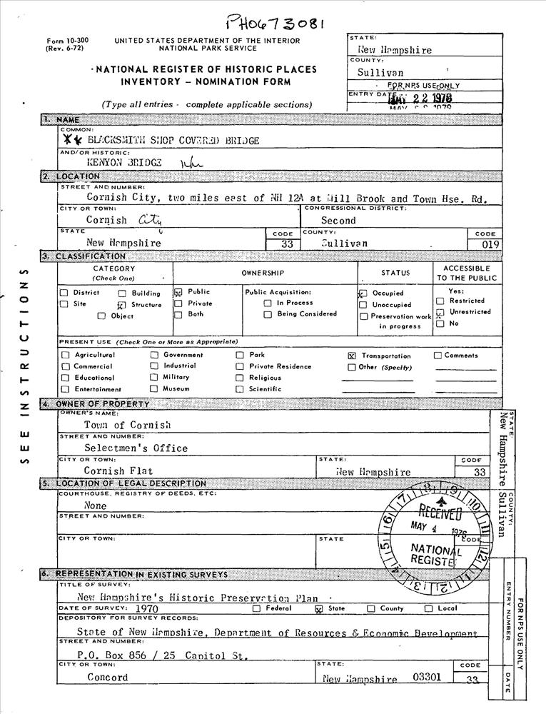 Cornish City ; Off NH 12A at Mill Brook and Town House Rd.