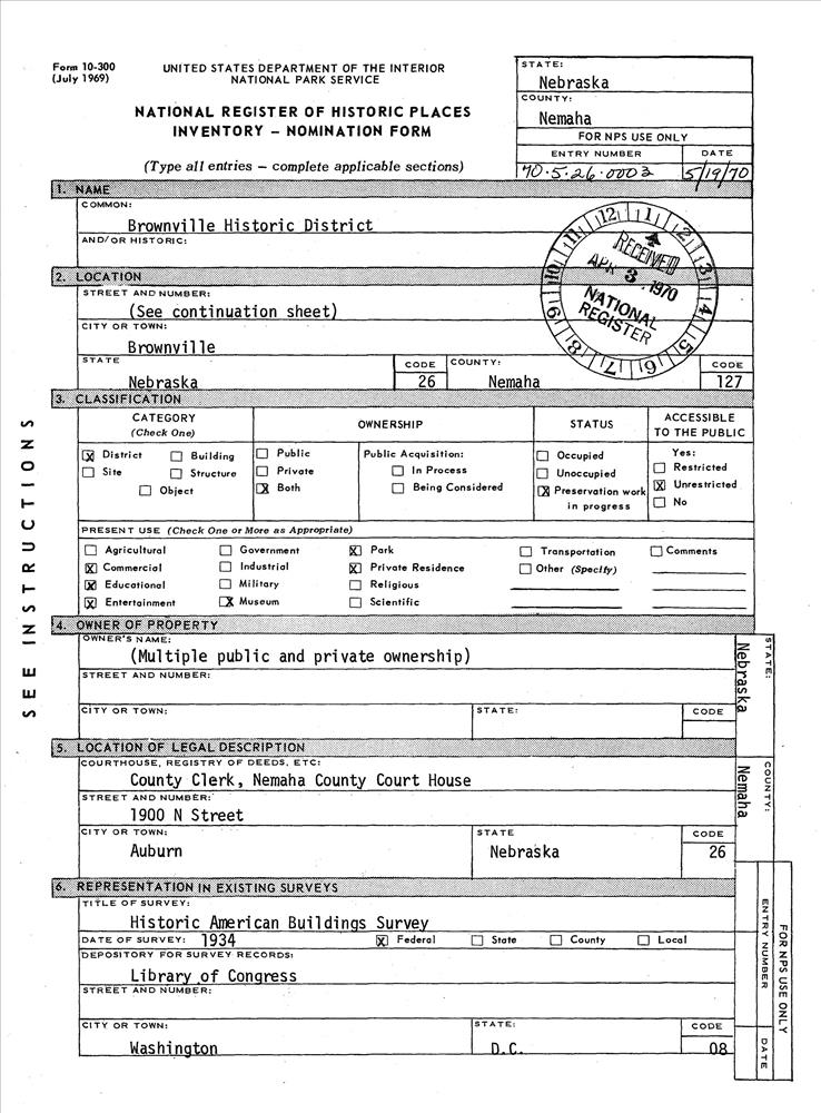 Brownville ; Bounded by Allen, Richard, Nemaha, Nebraska, 7th, and 2nd Sts. and the Missouri River