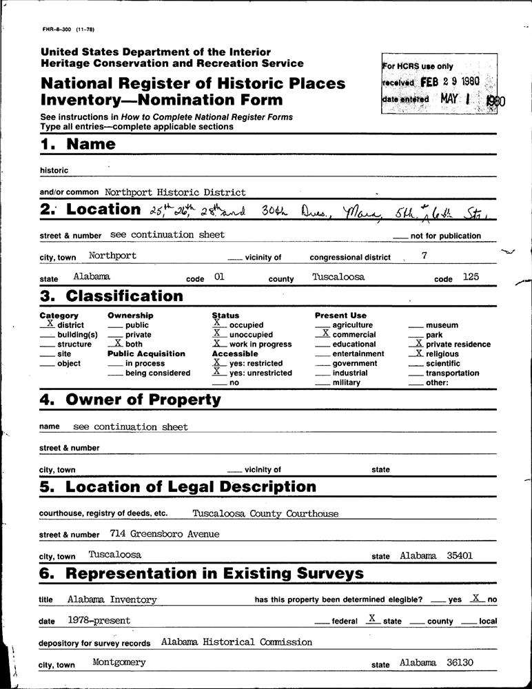 Northport ; 25th, 26th, 28th and 30th Aves., Main, 5th, and 6th Sts.