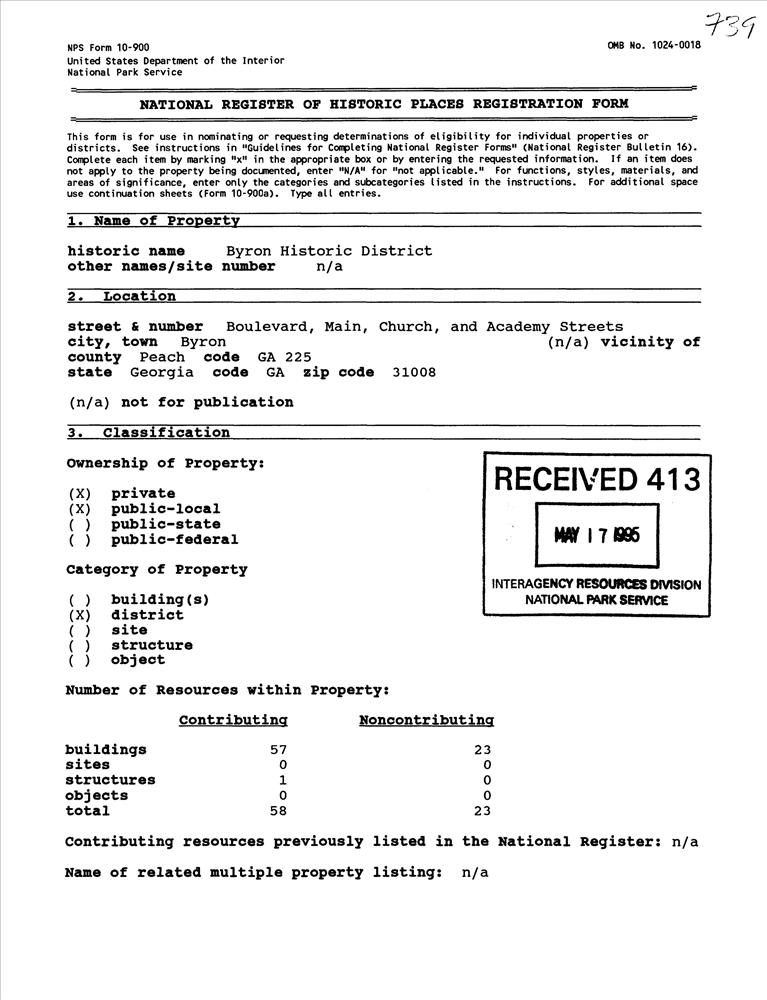 Byron ; Roughly, along the Central GA RR tracks from Jackson St. to Vinson St. including Boulevard, Main, Church and Academy Sts
