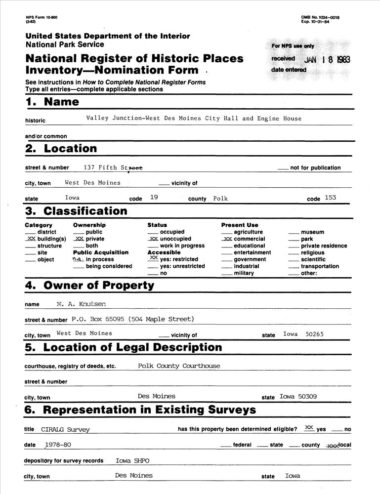 West Des Moines ; 137 5th St.
