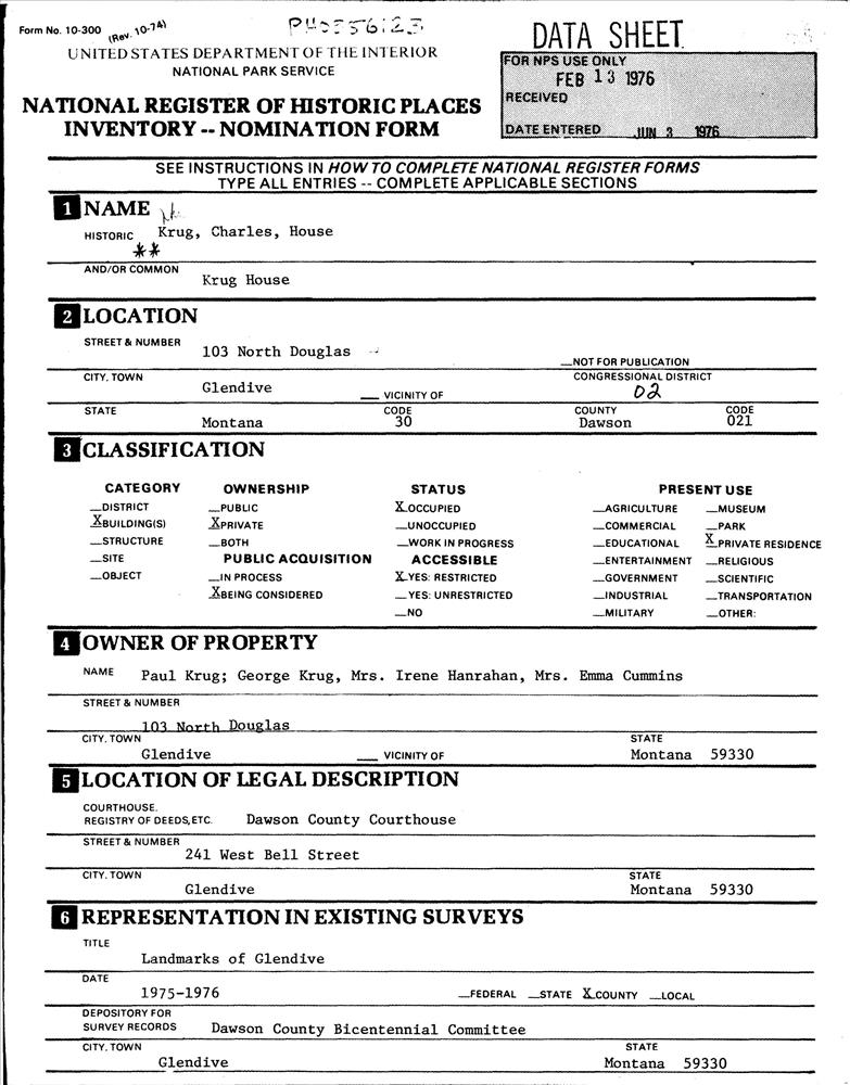 Glendive ; 103 N. Douglas St.