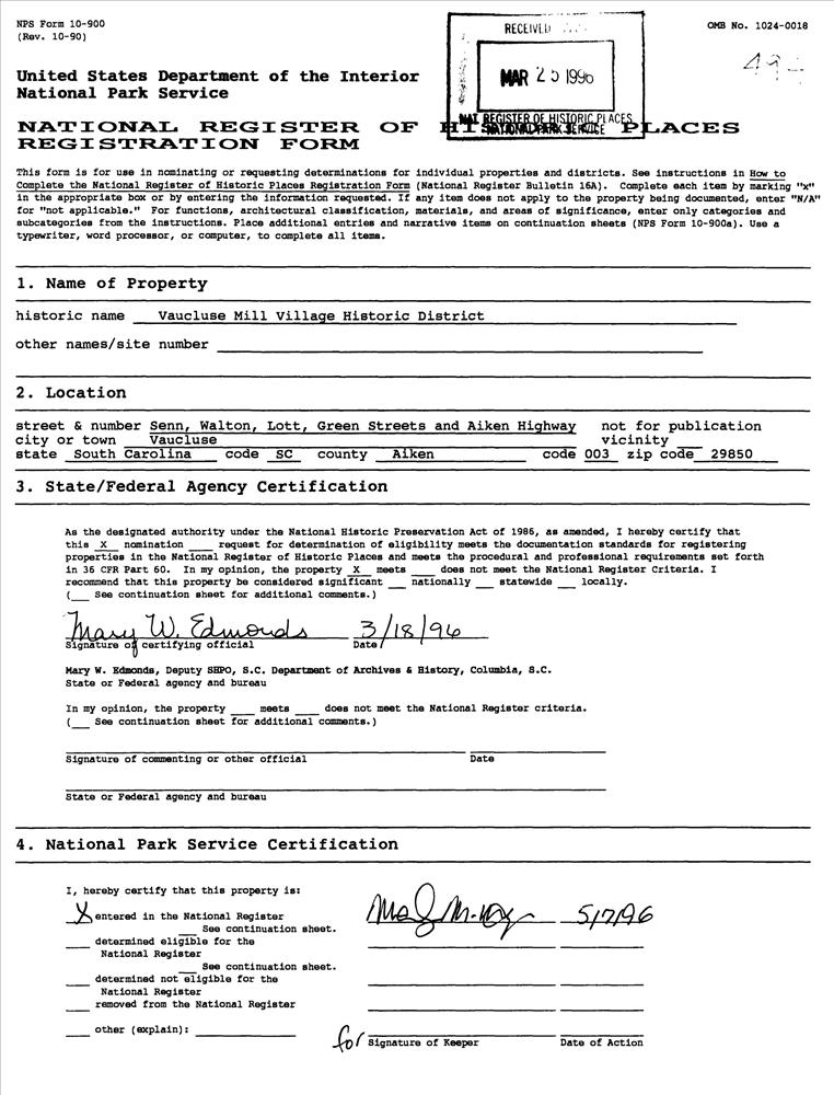 Vaucluse Mill Village Historic District