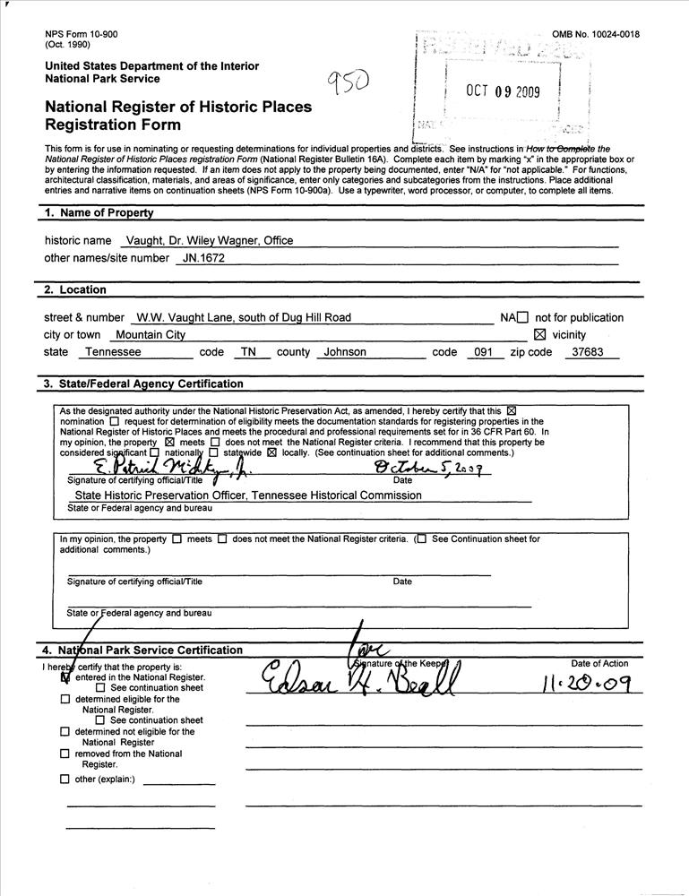 Vaught, Dr. Wiley Wagner, Office