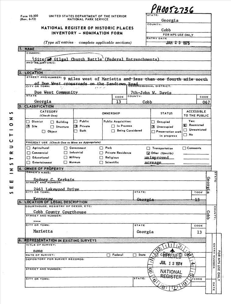 Marietta ; 9 mi. W of Marietta on Sandtown Rd.