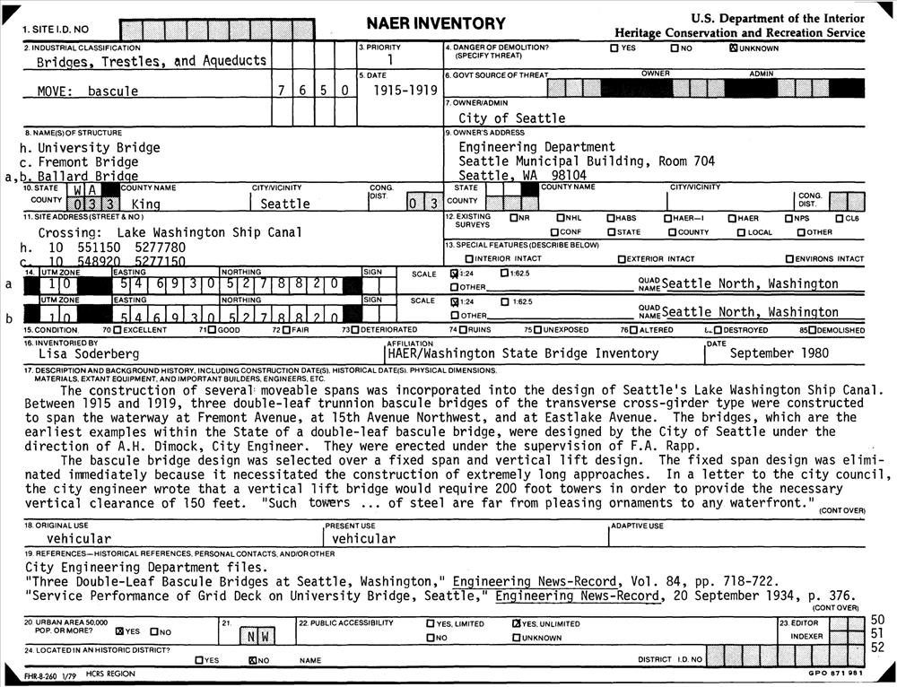 Seattle ; Spans Lake Washington Ship Canal