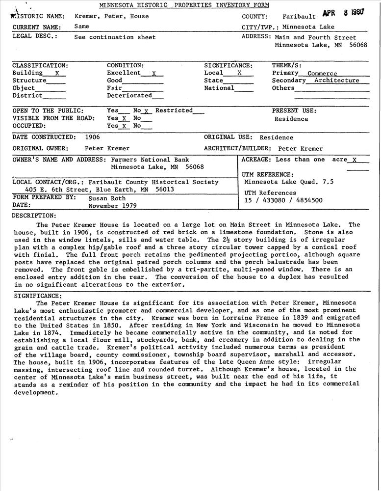 kremer,peter ; 1906
