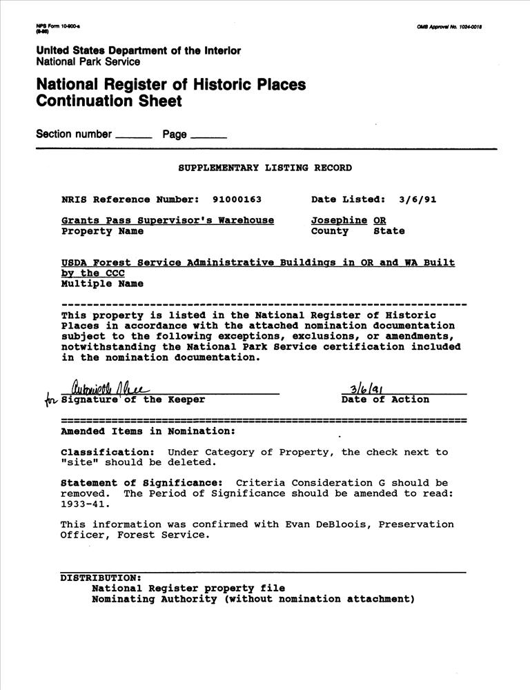USDA Forest Service Administrative Buildings in Oregon and Washington Built by the CCC MPS