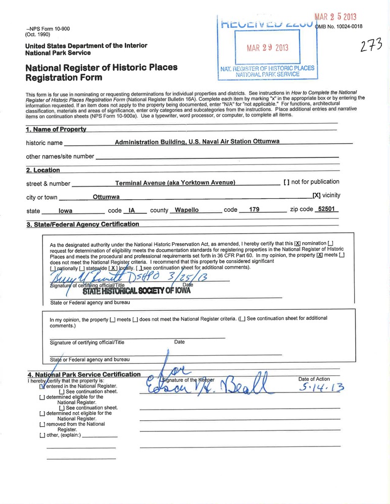 Administration Building, U.S. Naval Air Station Ottumwa